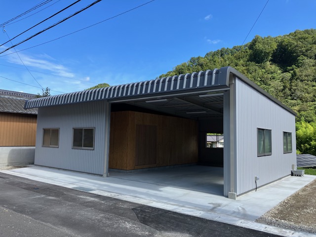 屋根はガルバリウム鋼板(瓦棒葺)、壁は金属のサイディングを使用しています。